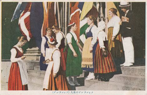 特25714/フィンランドの美人 世界の面白い風俗 乙女たちが奥に特有の着衣を…