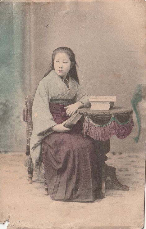 特25925/本を持つ着物美人