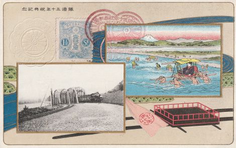 特26035/鉄道五十年祝典記念 汽車の景 連台と渡川切符